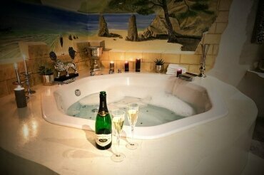 - romantisches Partnerbad bei Kerzenschein und Sekt
