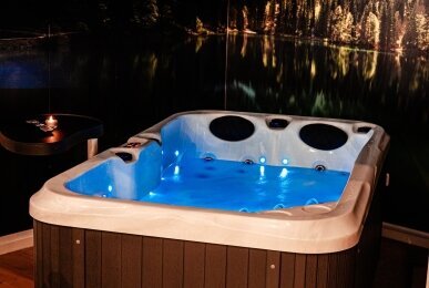 Im eigenen Whirlpool entspannt Ihr bei einem guten Glas Wein, während Ihr gemeinsam einen schönen Film schaut oder einfach die Ruhe genießt.