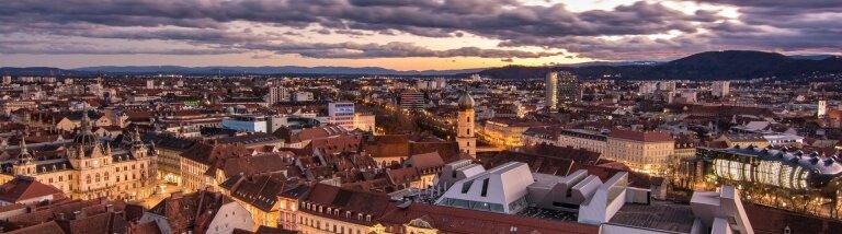 Graz ist die zweitgrößte Stadt in Österreich und als Universitätsstadt bekannt. In der Altstadt treffen Vergangenheit und Moderne aufeinander, wenn neben futuristischen Gebäuden, wie dem „friendly alien“, uralte Steinmauern stehen. Die Altstadt von Graz gehört zum UNESCO-Weltkulturerbe. Eine Aussicht auf das komplette Gebiet erhält man vom Grazer Uhrturm, welcher zugleich auch das Wahrzeichen der Stadt ist. Graz ist ebenfalls bekannt als Genussstadt, denn hier kann man in den zahlreichen Lokalen und Restaurants die komplette kulinarische Vielfalt der Region auskosten.
